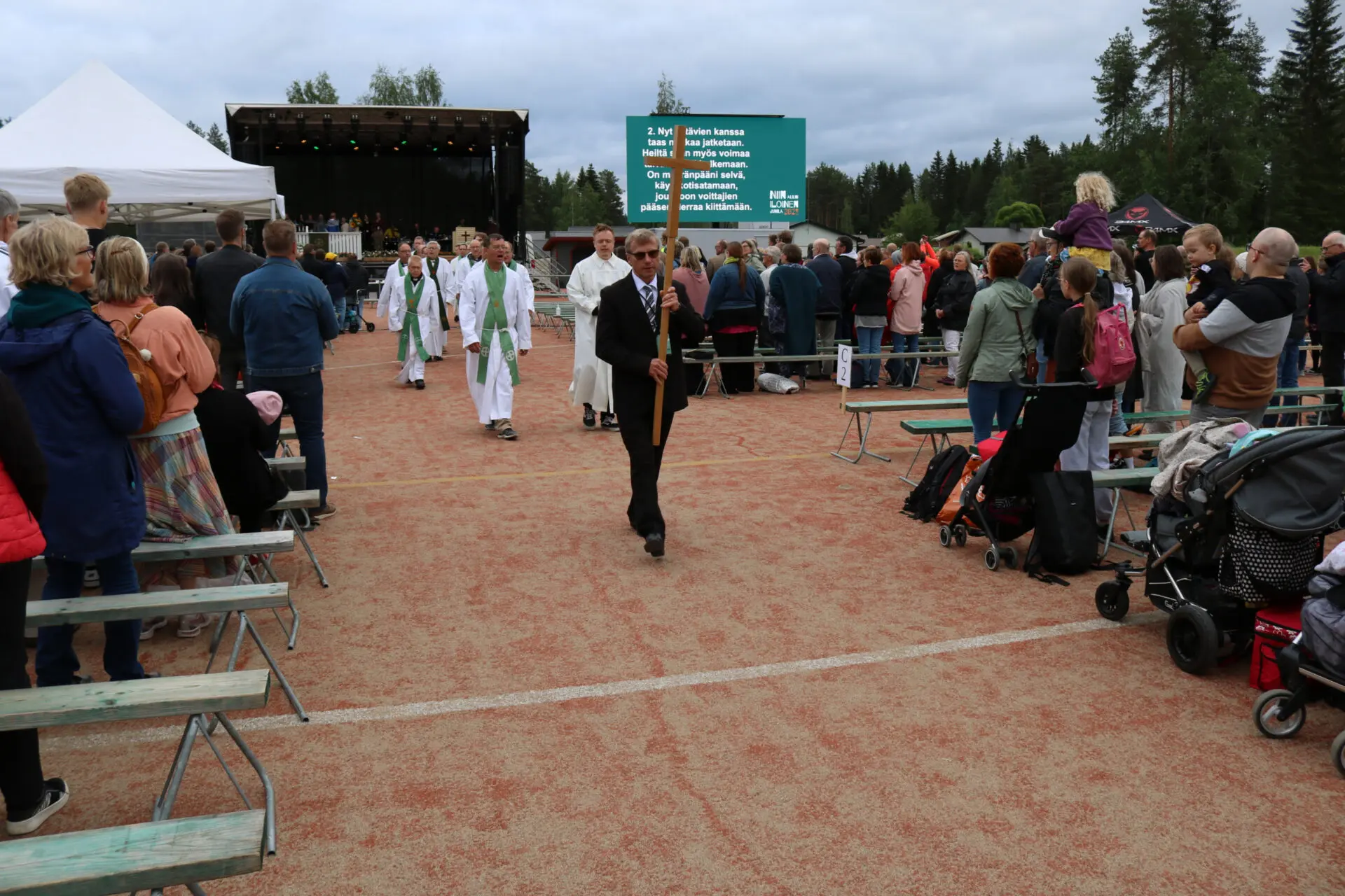 – Jos Jumala suo, vuoden päästä vietämme Evankeliumijuhlaa Oulaisissa Pyhäjoen rantamilla, vain tunnin ajomatkan päässä. Silloin Siionin kannel viettää 150-juhlavuotta ja vietämme sitä Siionin kanteleen laulusta 39 nousevalla teemalla ”Sinut myös on armahdettu”. Kutsun teitä kaikkia mukaan juhlaan. Jotka pääsette, myös talkoisiin, mutta kaikkia teitä rukoilemaan tulevan juhlamme puolesta, tervetuloa, Oulaisten kirkkoherra Matti Hirvilammi toivotti juhlaväen tervetulleeksi Oulaisiin.